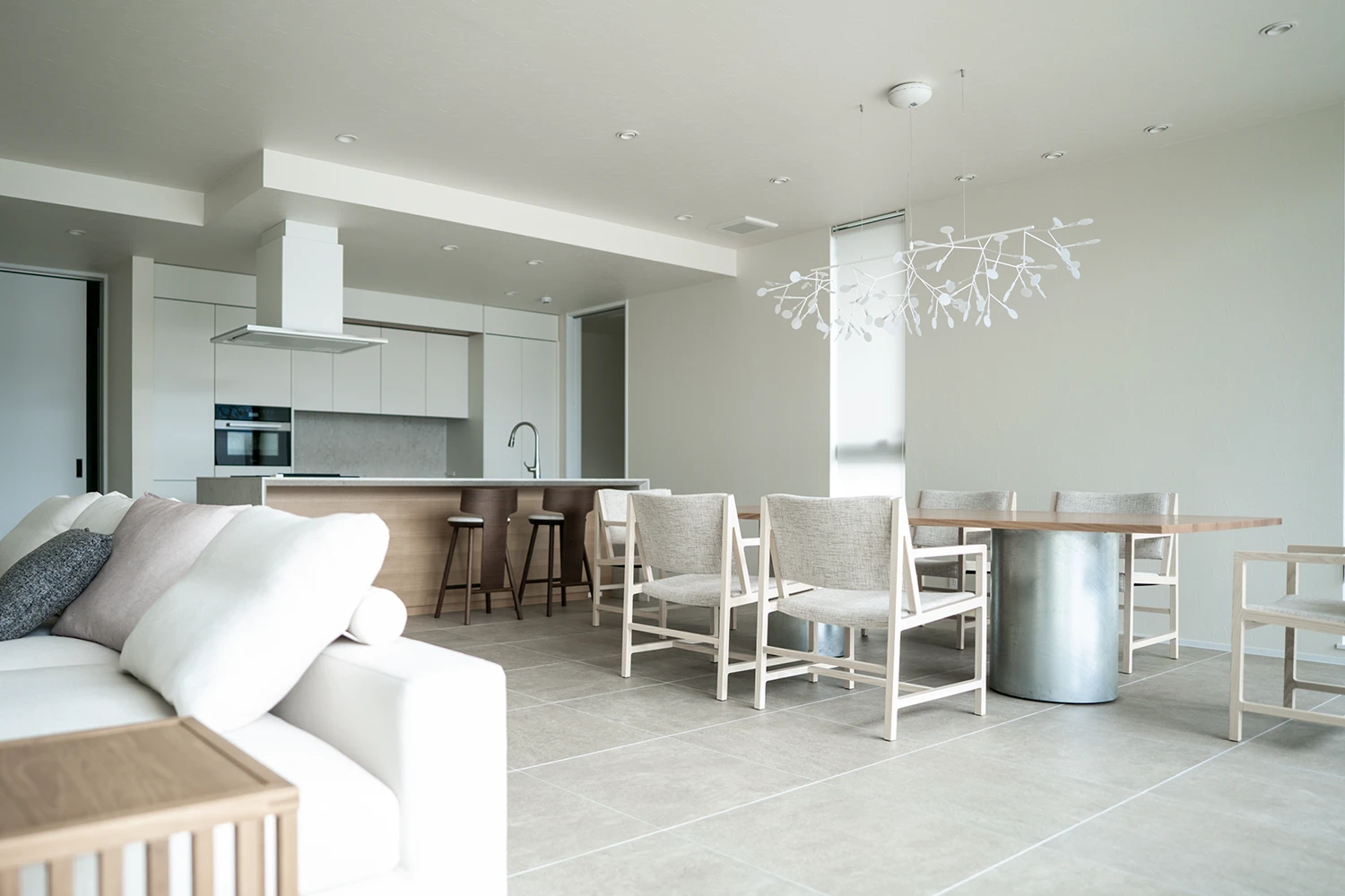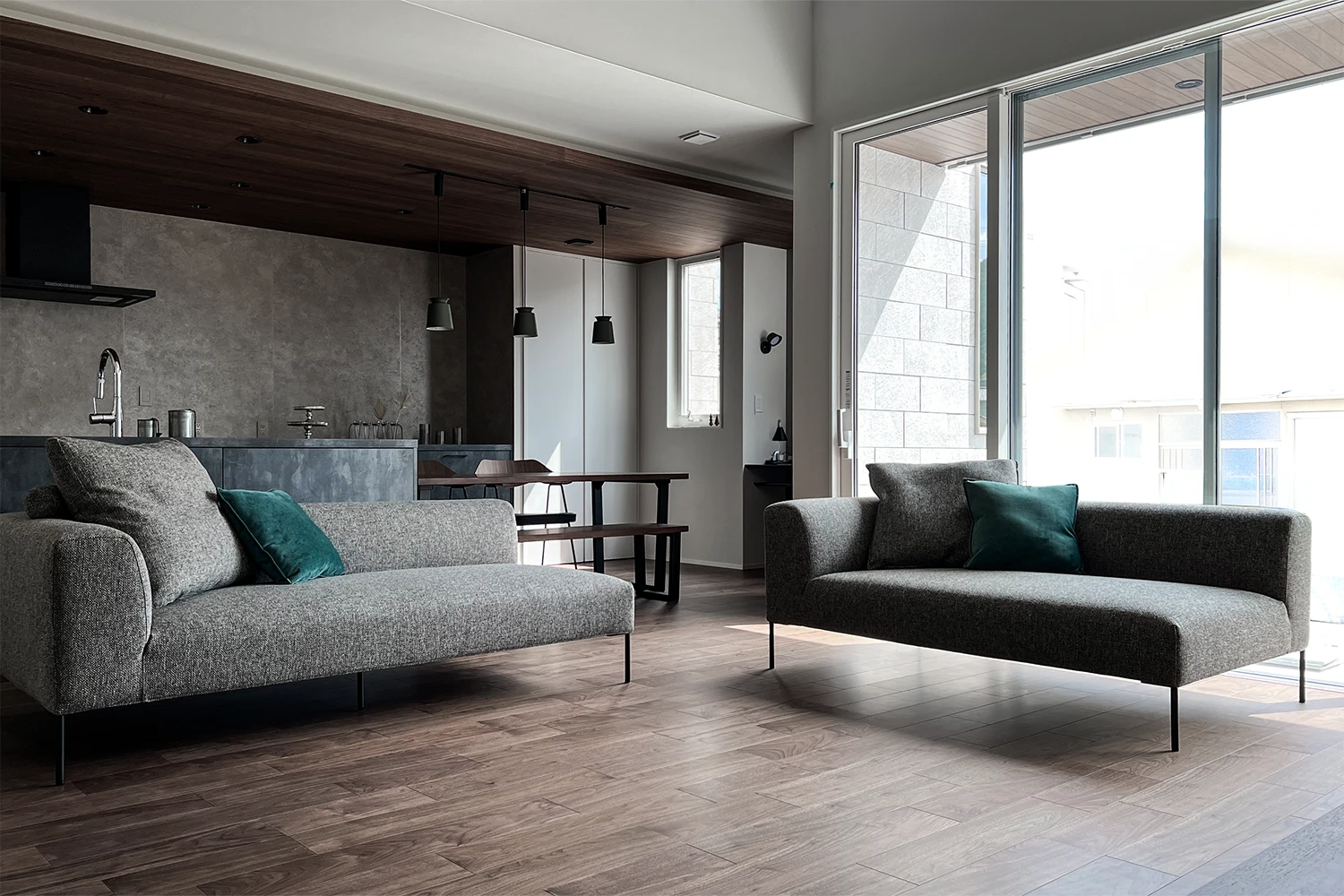 ②Porcoソファの背もたれまでの高さは550mmです。勾配天井の空間でも、圧迫感なくきれいに収まります。
