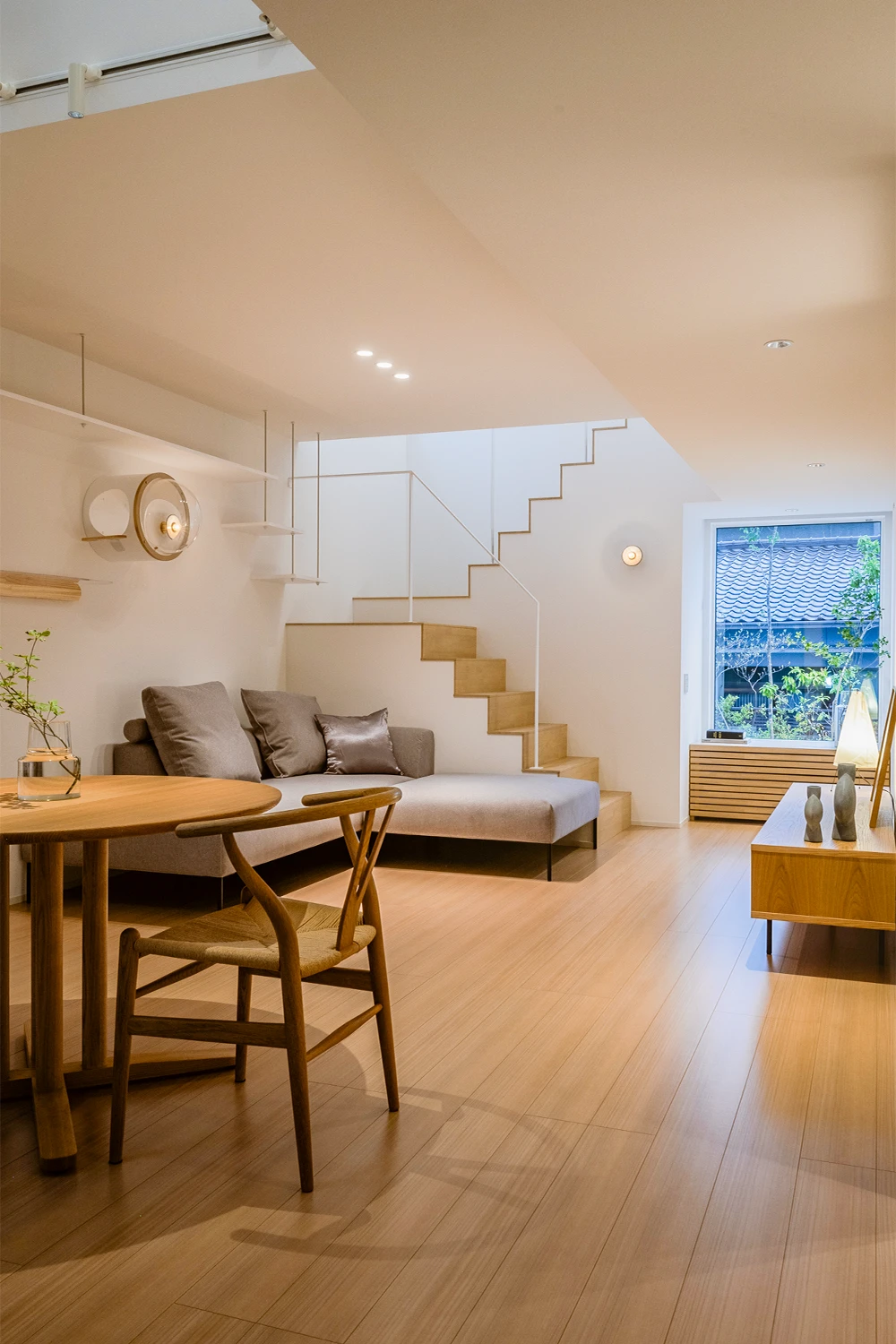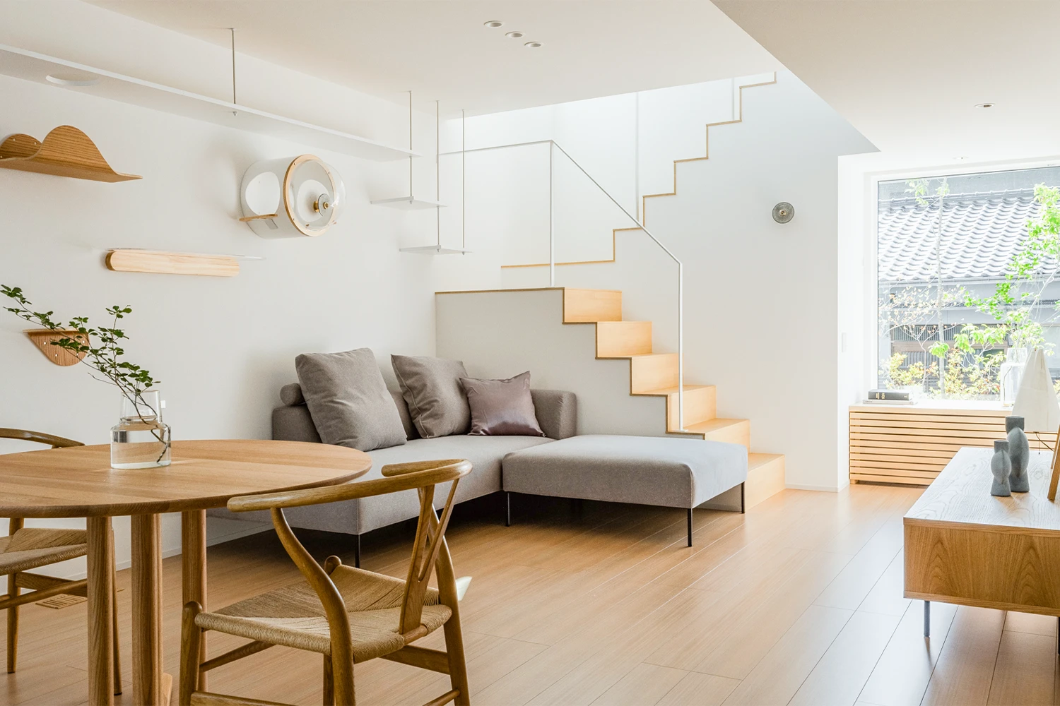 愛猫も含め、家族みんなの暮らしやすさを大切にして設計されたお住まいです。ソファは壁に沿って置けるよう工夫されており、LDK全体をスムーズに回遊できるつくりになっています。そのおかげで、ソファ自体の圧迫感も最小限に抑えられています。