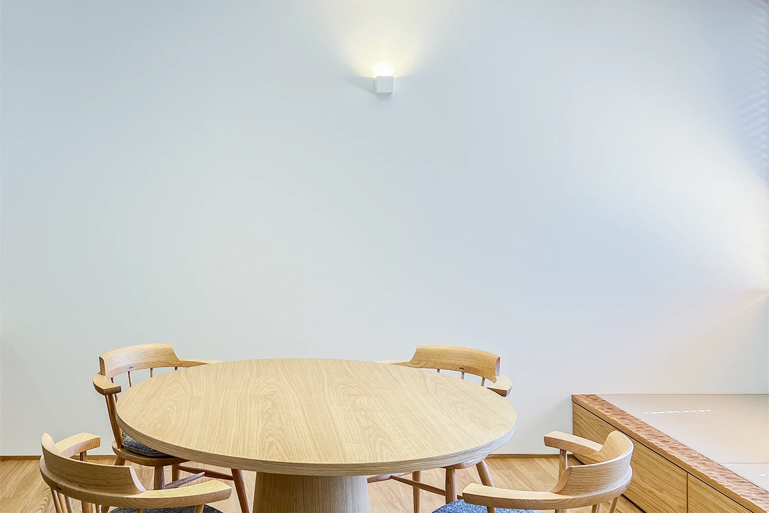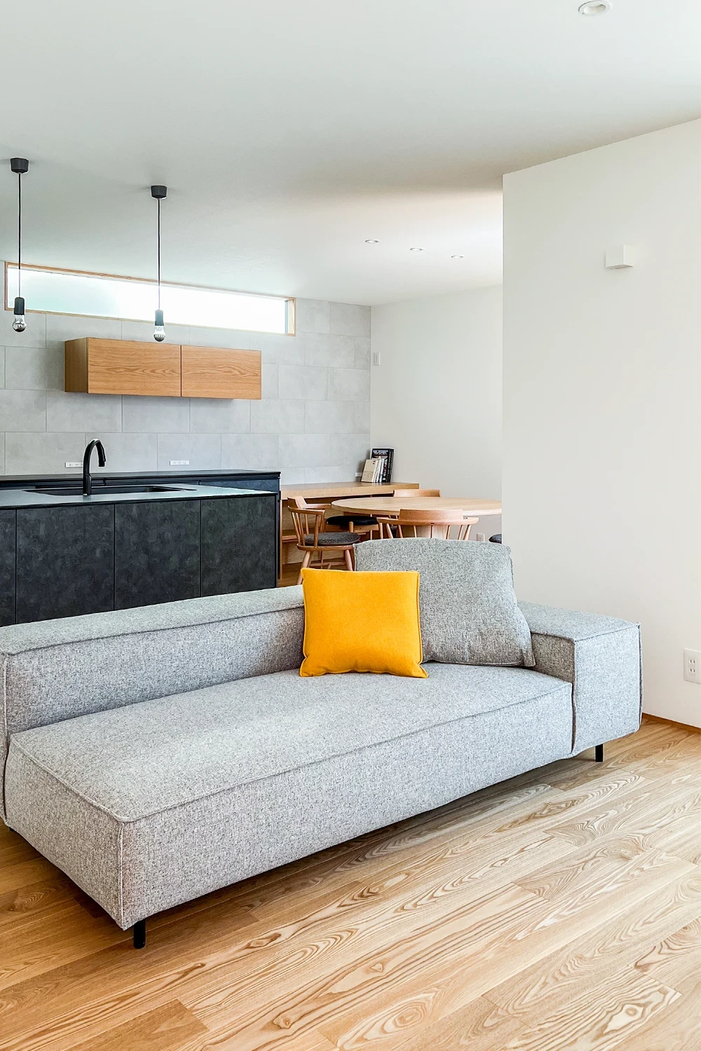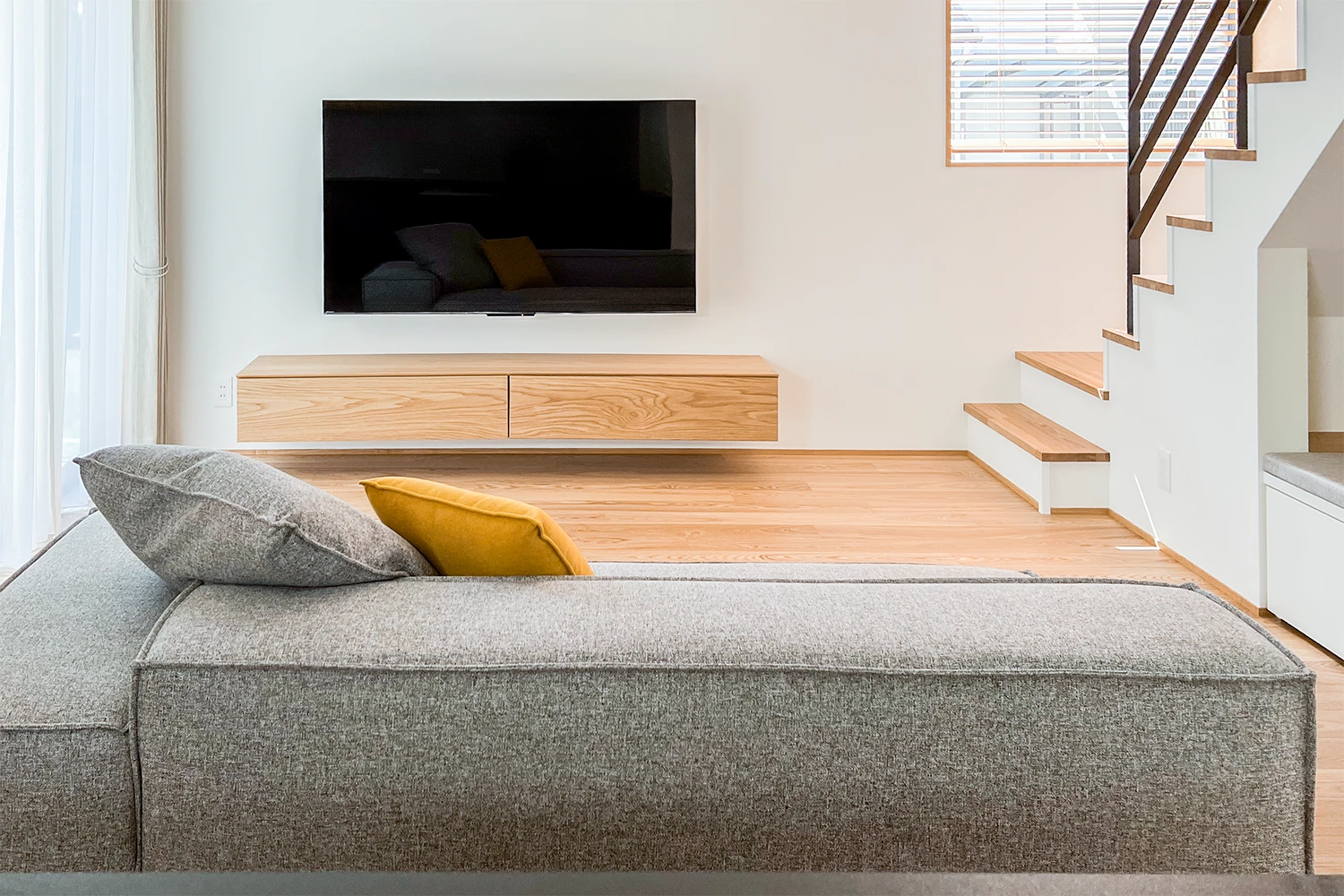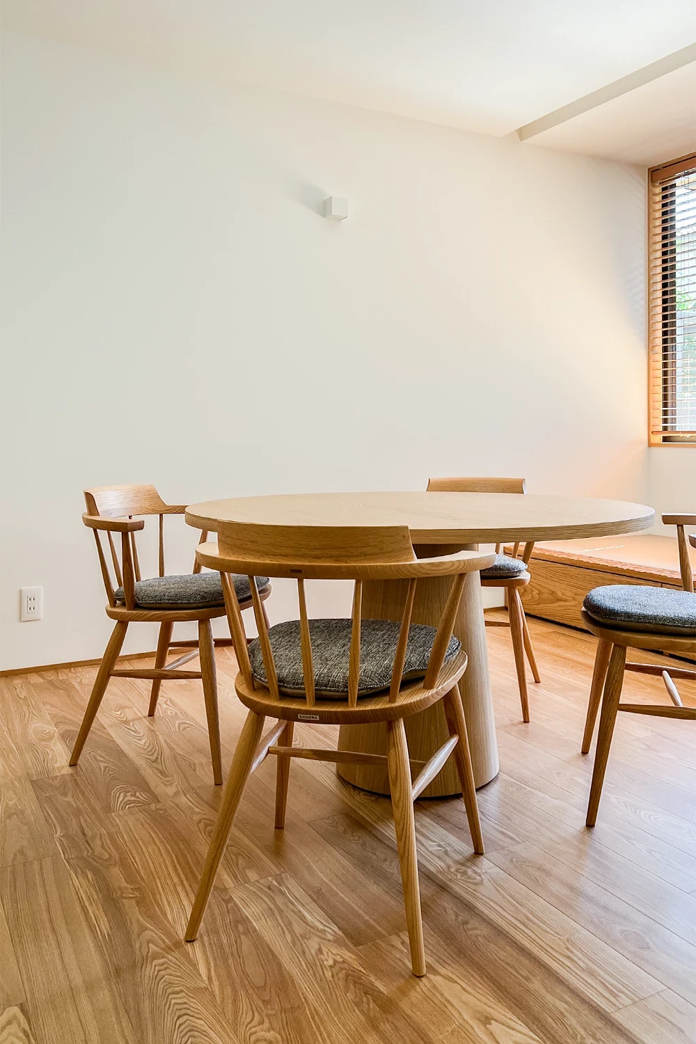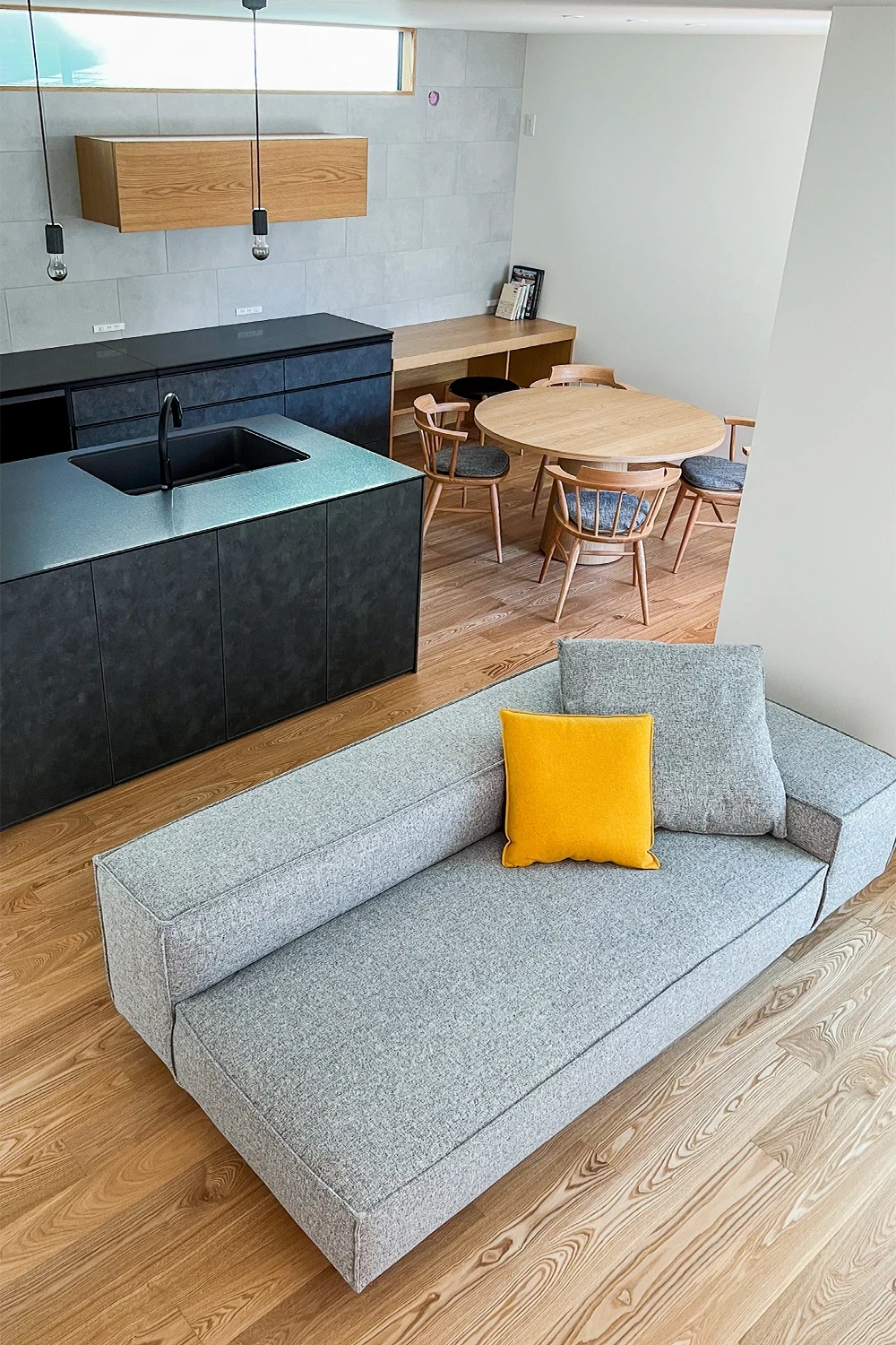 ダイニング脇の小上がりや階段下のヌックなど、チェアやソファのそばには、建築で用意された居場所があります。座る場所が変わるたびに、見える景色が変化し、様々な暮らし方が楽しめるお住まいです。