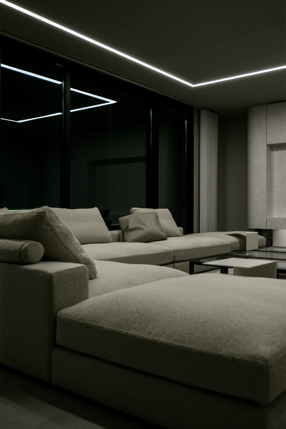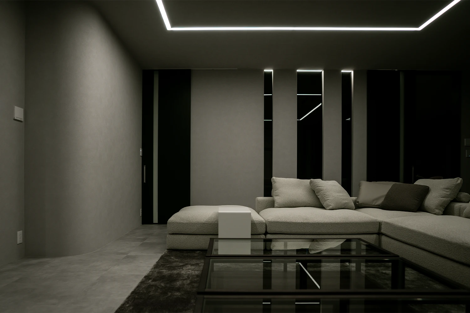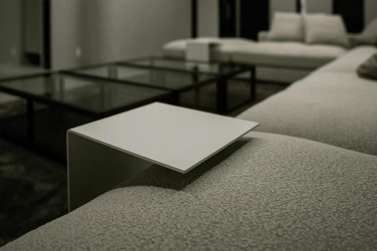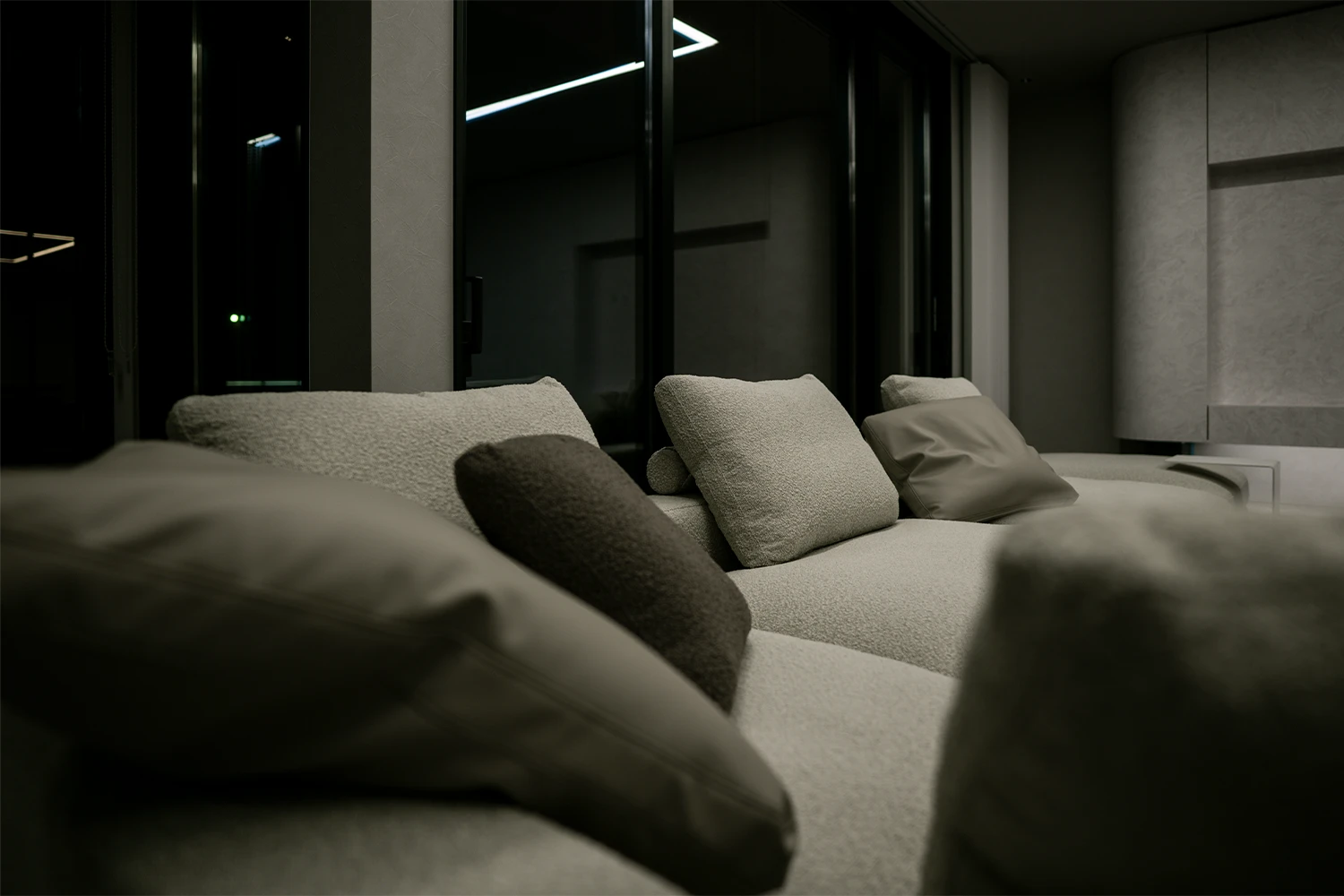 広いリビングに、ほどよいボリュームでバランスがとりやすいソファ「LUCAS SOFT」が採用されました。ブークレの生地が、よりふっくらと柔らかい印象を演出しています。
