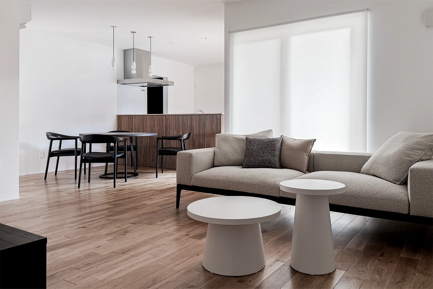 「世代を超えて住み継がれる家づくり」もテーマの一つに掲げる広島の住宅会社trilll(トリル)。新たなコンセプトハウスには、自然光を遮らない重心の低いソファと、回遊しやすいラウンドテーブルのある暮らしをご採用いただきました。